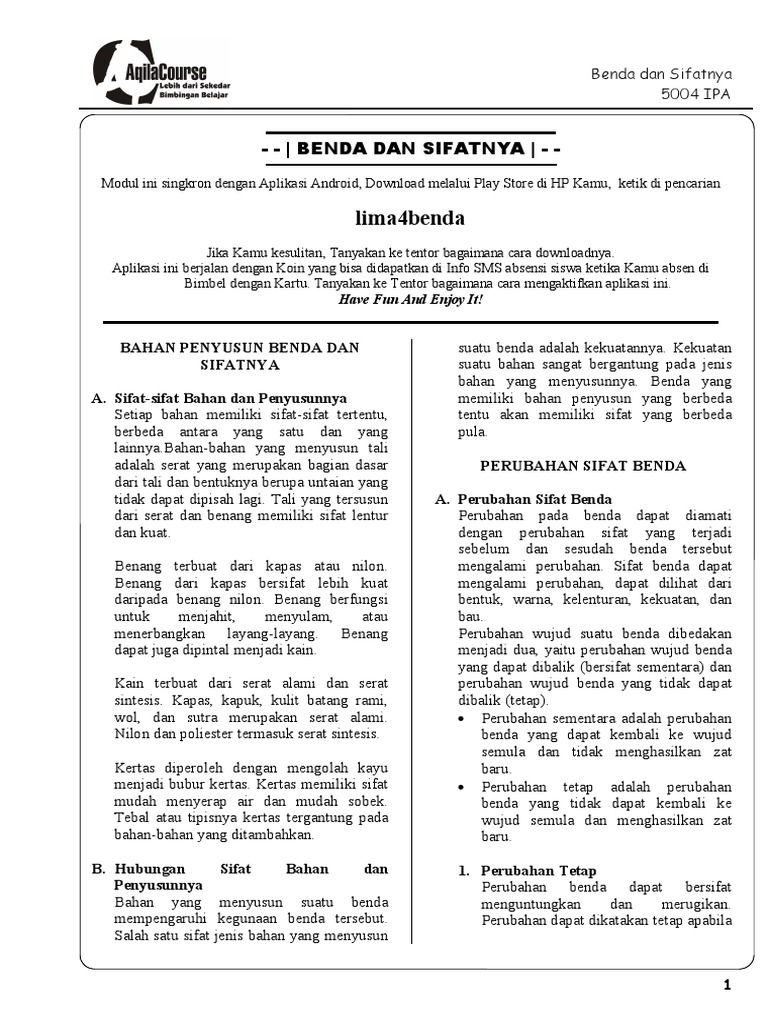 Modul Bimbel Kelas 4 Ktsp 5004 Ipa Bab 4 Benda Dan Sifatnya