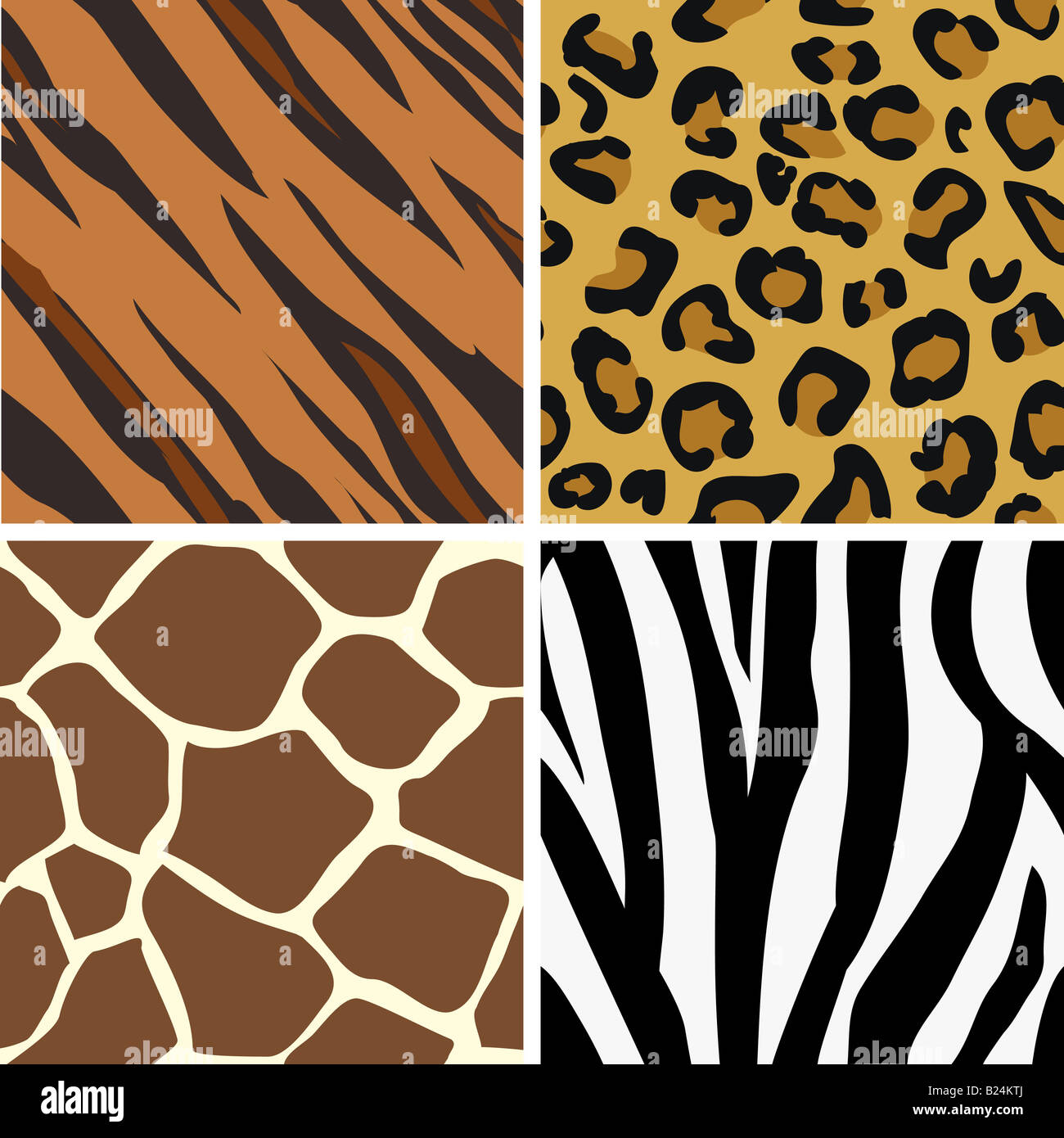 Cuatro Seamless Tiling Animal Print Jirafa Cebra Tigre Y Leopardo Ilustracion Vectorial Fotografia De Stock Alamy