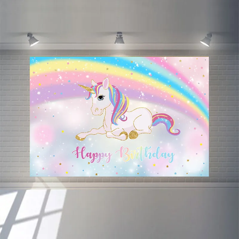 Neoback Fondo De Feliz Cumpleanos De Unicornio Arcoiris Para Foto Estrella Brillante Fondo De Cumpleanos De Dibujos Animados Fondo De Foto Para Ninos Fondo Aliexpress