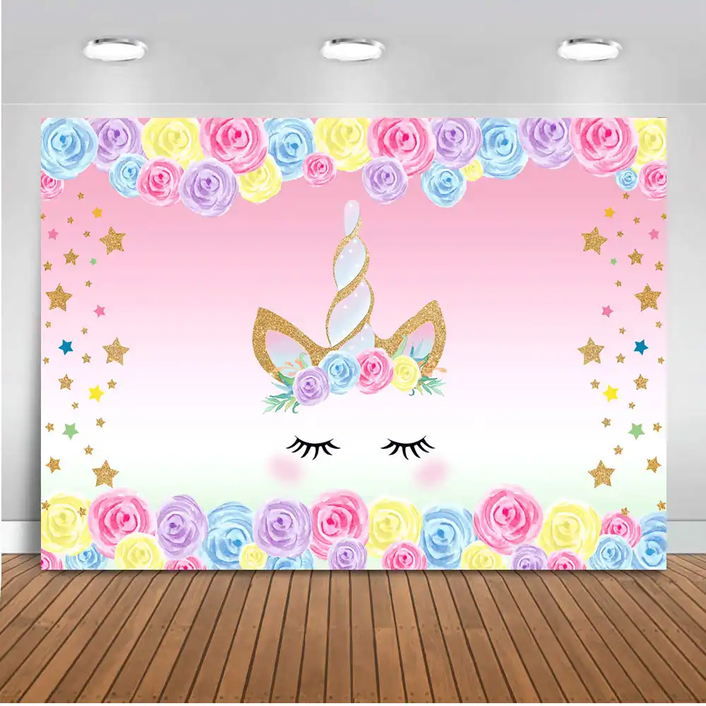 Fondos De Fotografia Unicornio Floral Unicornio Dorado Fondo De Cumpleanos Estrellas Brillantes Rosa Tema Recien Nacido Retrato Telon De Fondo Fondo Aliexpress