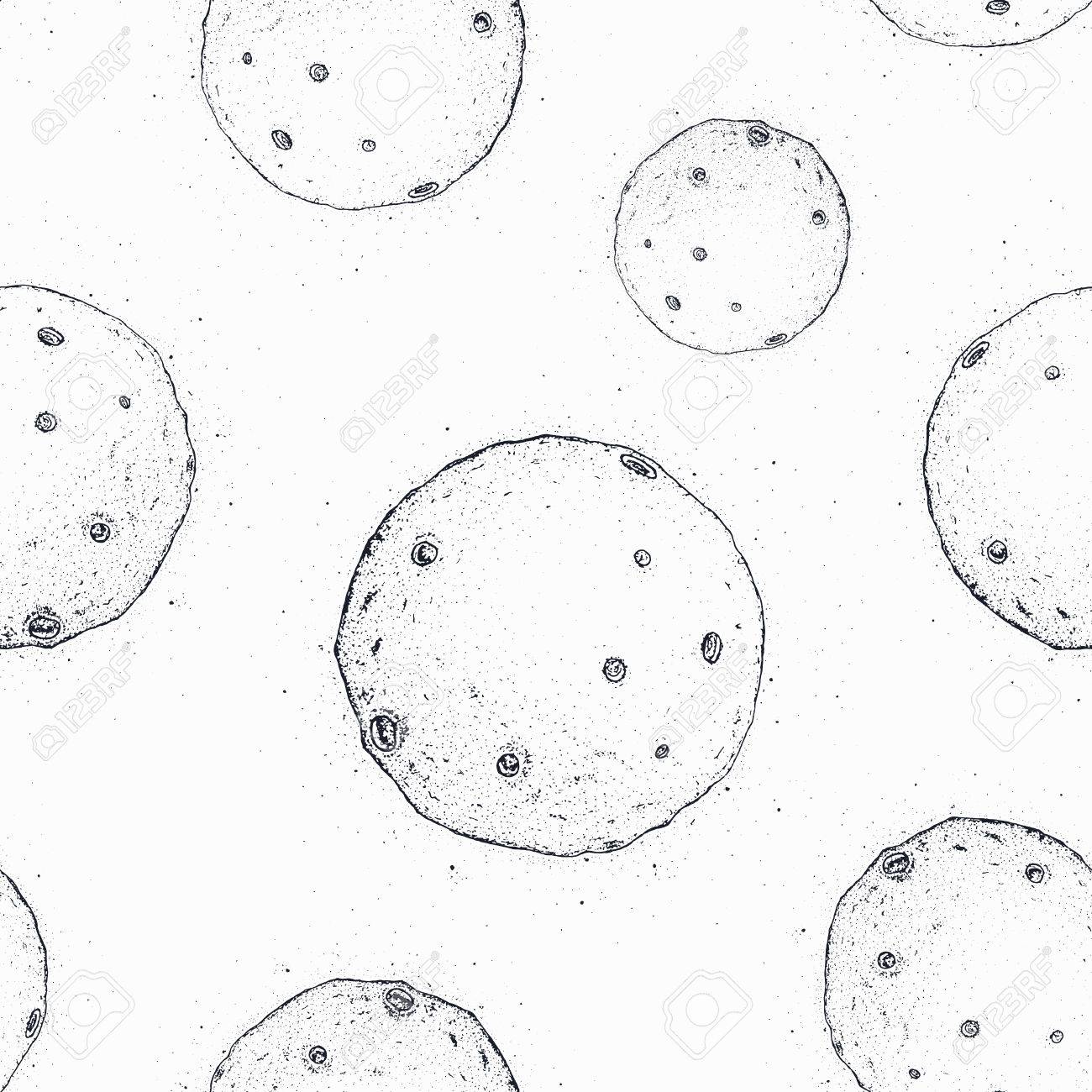 Patron Monocromo Con Luna Cubierta De Crateres Cuerpos Astronomicos Celestes En El Espacio Exterior Dibujados A Mano En Colores Blanco Y Negro Ilustracion De Vector De Fondo De Pantalla Impresion De Tela