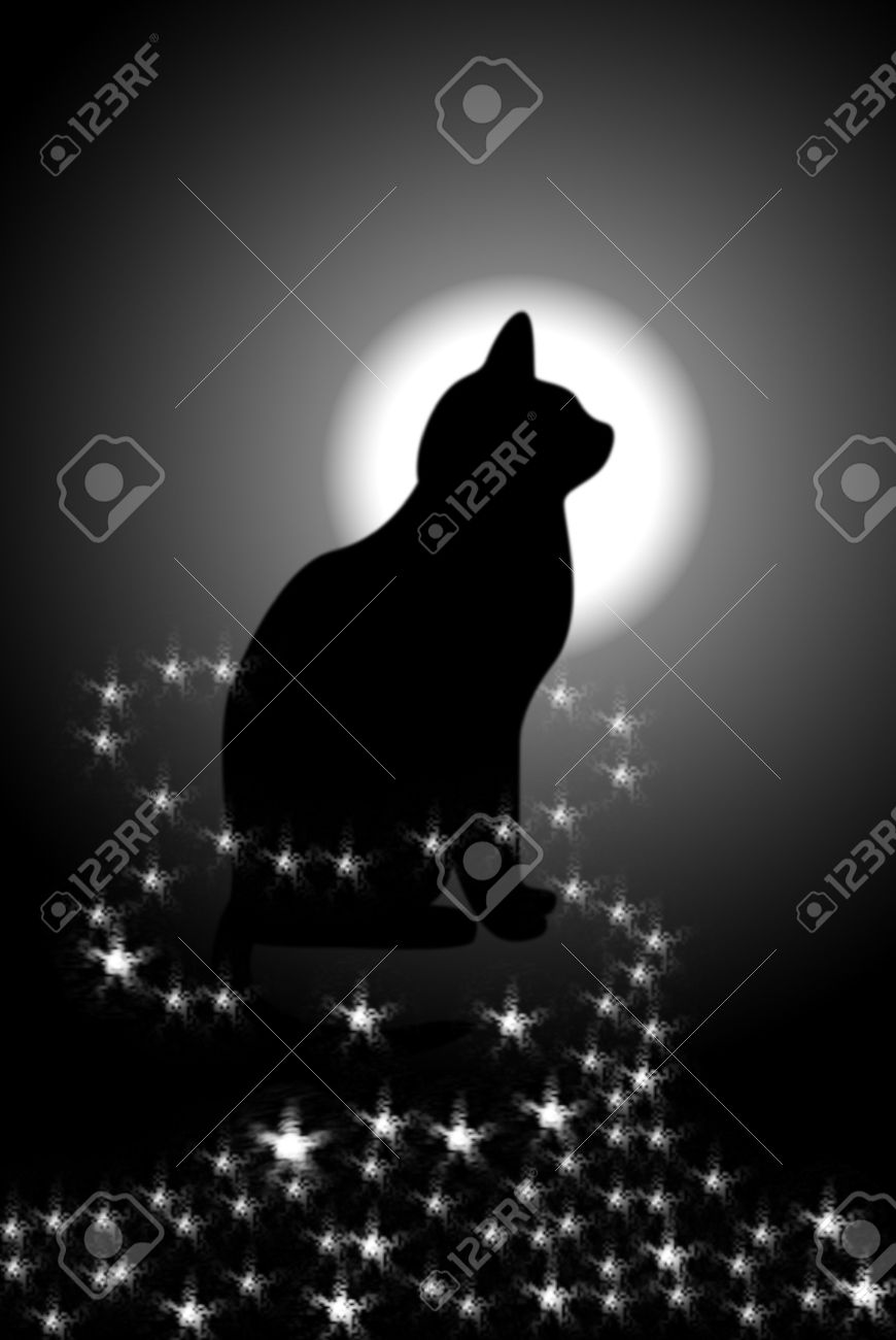 El Gato Negro Sobre Fondo De La Luna El Gato En Fosforescencia Mistico Fotos Retratos Imagenes Y Fotografia De Archivo Libres De Derecho Image 6137096