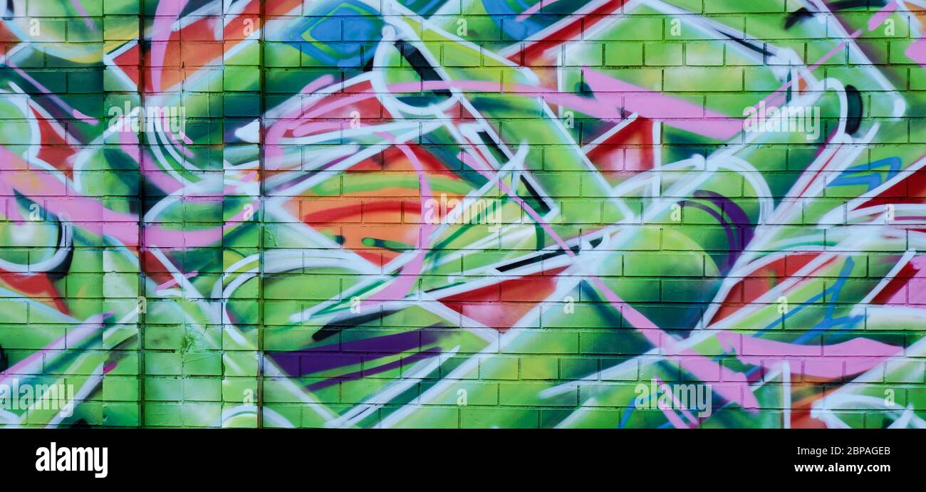Resumen Colorido Graffiti Fondo Pared Con Obras De Arte Urbano Con Colores De Verde Blanco Rosa Naranja Amarillo Y Azul Fotografia De Stock Alamy
