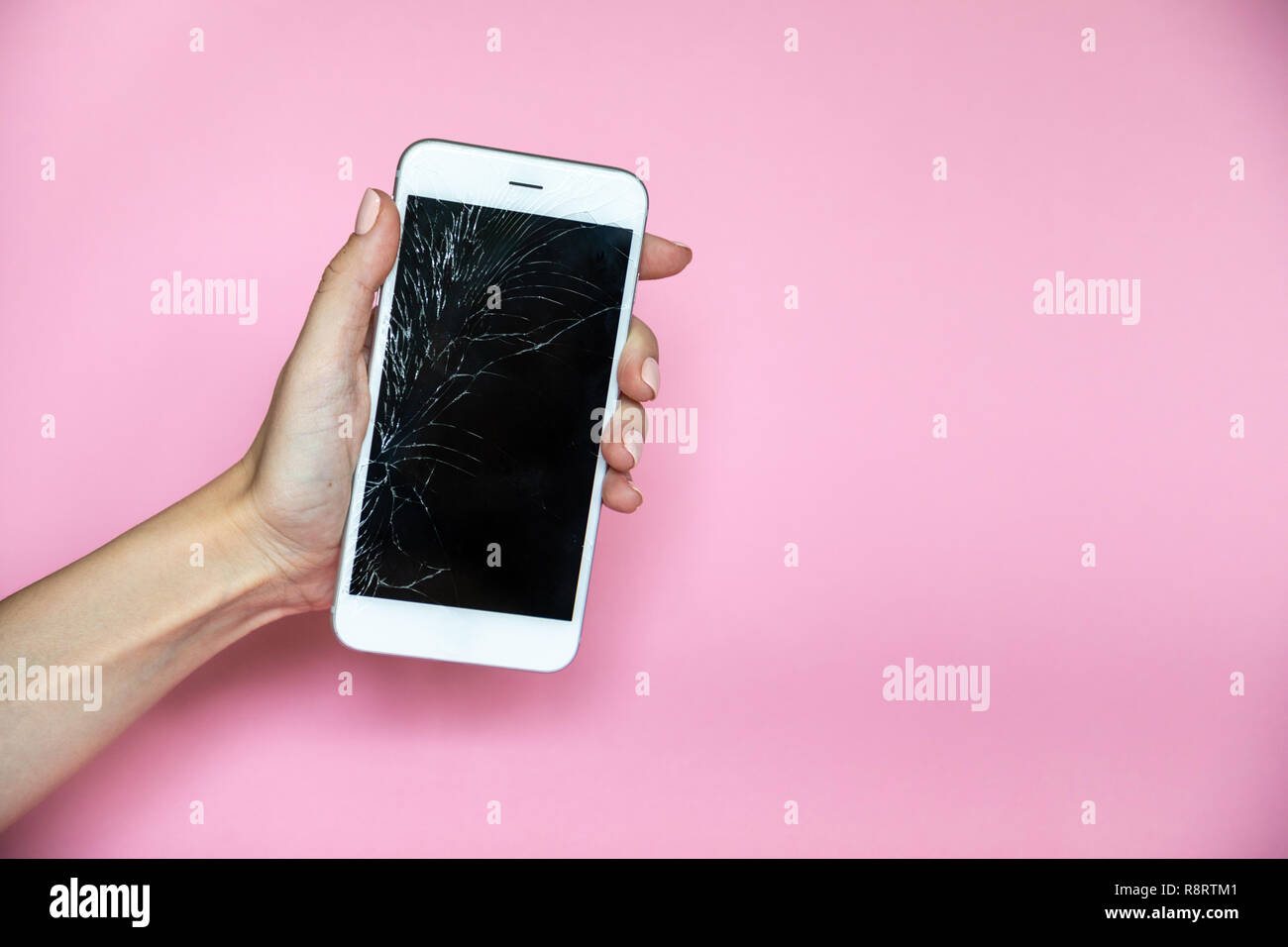 Imagen De Pantalla Rota En El Telefono Movil En El Fondo De Color Fotografia De Stock