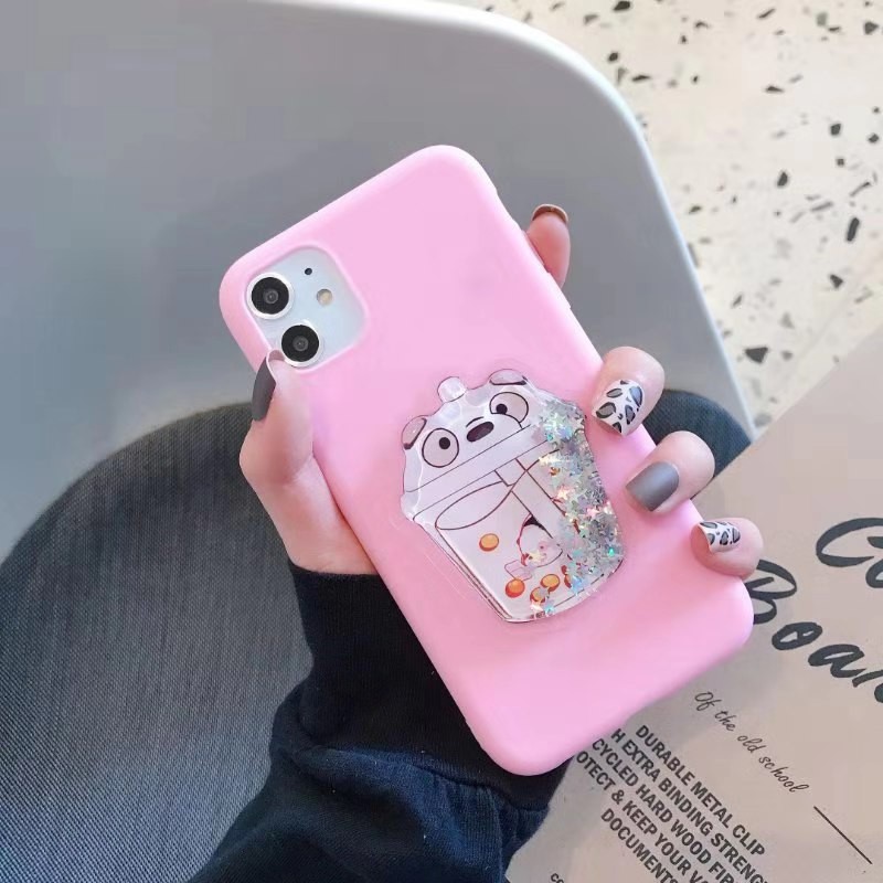 Popularity Cartoon Pearl Milk Tea We Bare Bears Phone Case Compatible For Iphone 11 Pro X Xs Max Xr 6 6s 7 8 Plus Fashion Cute Lovers Imd Cover Compatible For Iphone 11promax 2